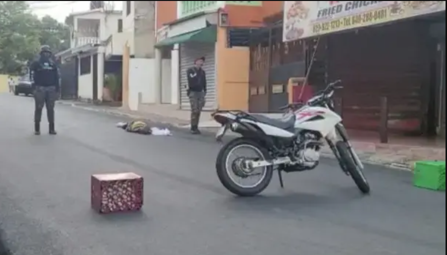 Pasadas las 8:30 de la mañana el cadáver permanecía en el pavimento a la espera de un legista, mientras el área es custodiada por agentes policías, según reporta el periodista Iván Feliz.