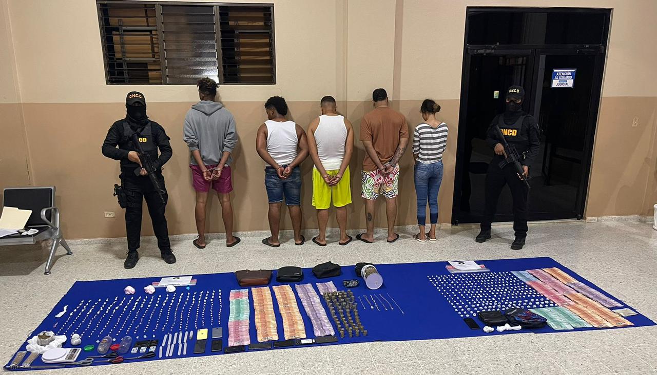 Los cinco detenidos, quienes serán identificados oportunamente, están siendo entregados al Ministerio Público del municipio de Nagua, mientras las autoridades activan la búsqueda de una mujer solo conocida como La Diva o la Gorda.