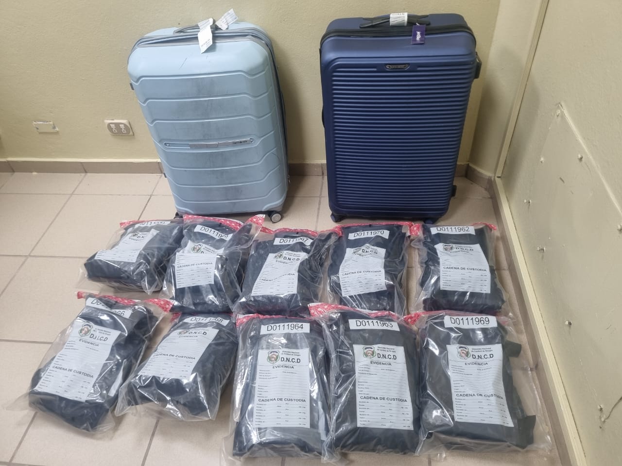 En presencia de un fiscal se procedió a abrir el equipaje, encontrando en su interior 21 paquetes de la sustancia, envueltos en prendas de vestir, con un peso superior a las 24 libras.