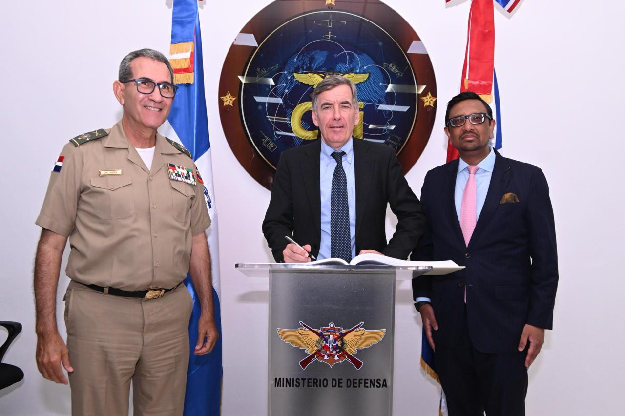 SANTO DOMINGO.- El ministro de Defensa, teniente general Carlos Luciano Díaz Morfa, ERD, recibió la visita de cortesía del ministro de Estado ante el Ministerio Británico de Relaciones Exteriores, Mancomunidad y Desarrollo, señor David Rutley, encuentro realizado en el salón de reuniones del Centro de Comando, Control, Comunicaciones, Computadoras, Ciberseguridad e Inteligencia (C5I) del Ministerio de Defensa (MIDE), en el cual se destacó la importancia de la colaboración entre ambas naciones en temas de defensa y seguridad.