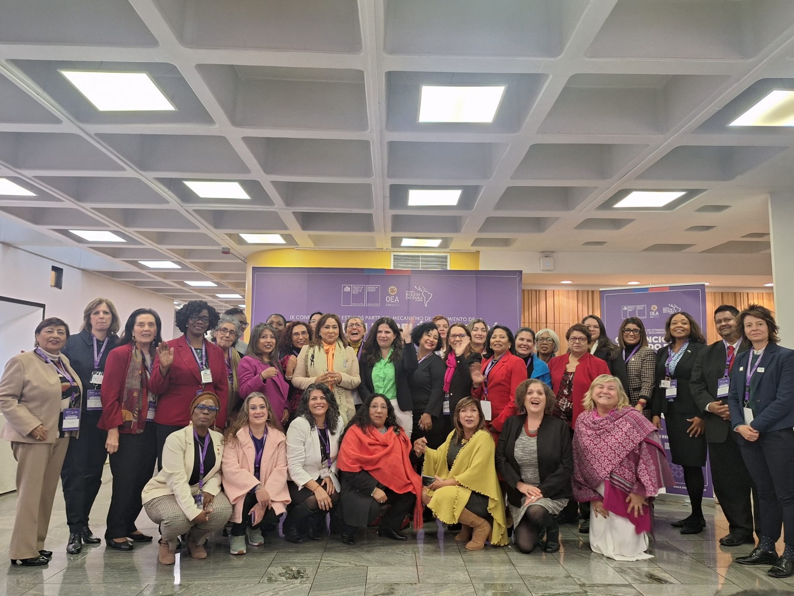 Chile. La ministra de la Mujer, Mayra Jiménez encabezó la delegación país junto a Jesica Croce, directora de Prevención y Atención a la Violencia de Género e Intrafamiliar; Odennys Anabel Jiménez Tejada, encargada de la Oficina Provincial de Valverde Mao, del Ministerio de la Mujer; y la doctora Yildalina Tatem, experta país en el Comité de Expertas del MESECVI, para participar en la novena Conferencia de Estados Parte en el marco de la conmemoración de los 30 años del Mecanismo de Seguimiento de la Convención Belém do Pará.