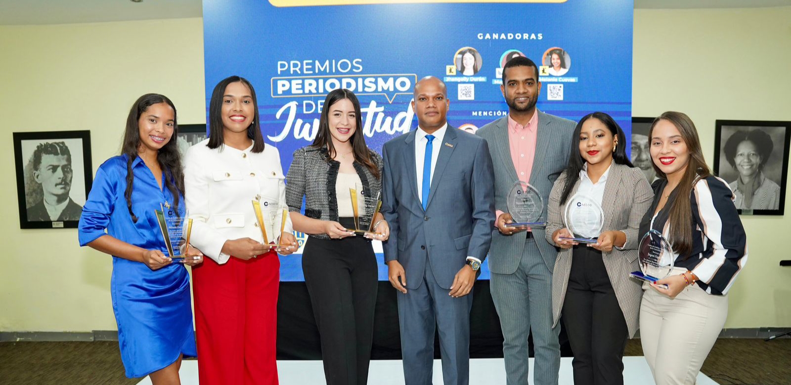 En esta celebración se galardonaron a tres periodistas: Massiel de Jesús, del periódico El Dinero; ganadora del premio en el renglón Realidad Social y Jhangeily Durán, en el reglón Jóvenes que Hacen Futuro y Melanie Cuevas, en el renglón Juventud y Democracia, ambas profesionales del periódico Listín Diario.