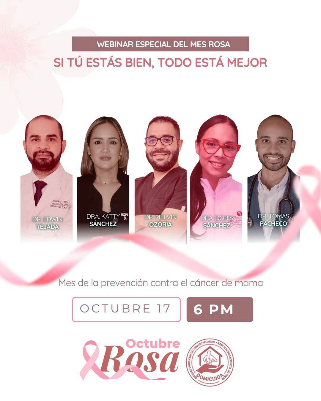 Santo Domingo. – La Sociedad Dominicana de Cuidados Paliativos y Manejo Intervencionista del Dolor Crónico (DOMICUIDA) se unió este 17 de octubre a la conmemoración del Día Mundial del Cáncer de Mama, con un mensaje de empatía, esperanza y compromiso con la atención integral de las personas que enfrentan esta enfermedad.